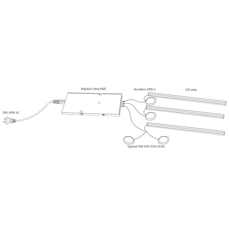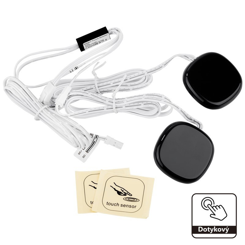 Vypínač LED dotykový separe stmievateľný KM-VDS-02SS DUAL 12V/24V 60W s dvoma čidlami. Krátkym dotykom v mieste vypínača zapnete/vypnete elektrický obvod, dlhým dotykom môžete nastaviť intenzitu osvetlenia. Vypínač má funkciu pamäte, kábel na vstupe a výstupe má dĺžku 1,5m. Vypínač je určený pre separátne ovládanie jednej vetvy osvetlenia skríň, kuchyň, šatníkov, postelí, vinoték a iného nábytku z dvoch miest. Inštaluje sa do vnútra nábytku a ovláda sa dotykom z vonkajšej strany nábytku v mieste kde je nainštalovaný. Vypínač je kompatibilný s napájacími zdrojmi SMART séria KMS, konektormi 2PIN-S, 2PIN-Y-S a prepojovacím konektorom 2PIN-S.