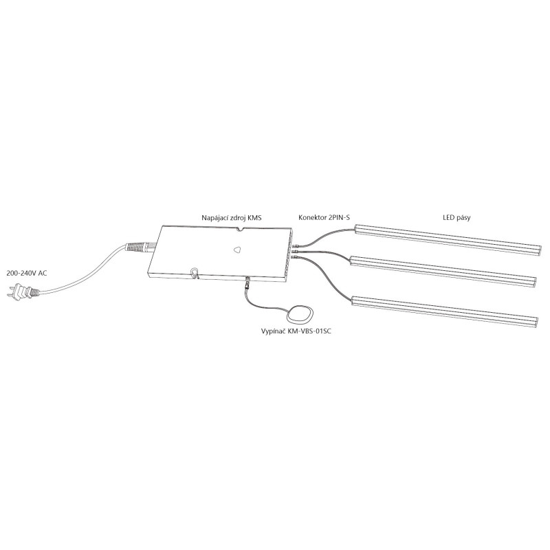 Vypínač LED bezdotykový central stmievateľný KM-VBS-01SC, 12V/24V. Krátkym pohybom v mieste vypínača zapnete/vypnete elektrický obvod, pridržaním ruky v mieste vypínača môžete nastaviť intenzitu osvetlenia. Vypínač má funkciu pamäte, napájací kábel má dĺžku 1,5m. Vypínač je určený pre použitie s napájacími zdrojmi SMART série KMS na centrálne bezdotykové ovládanie viacerých vetiev osvetlenia skríň, kuchyň, šatníkov, postelí, vinoték a iného nábytku. Inštaluje sa do vnútra nábytku a ovláda sa pohybom ruky v detekčnej vzdialenosti z vonkajšej strany nábytku v mieste kde je nainštalovaný. Vypínač je kompatibilný s napájacími zdrojmi SMART séria KMS.