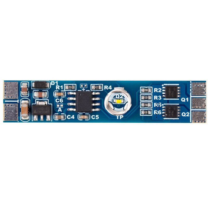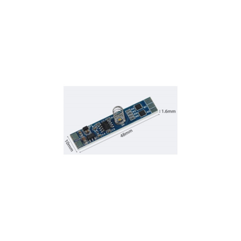 Vypínač LED dotykový KM-VDS-05L, 12V-36W, 24V-72W. Elektrický obvod zapnete/vypnete dotykem na libovolném místě hliníkové lišty ve které je instalován LED pás s tímto vypínačem. Vhodný pro montáž do hliníkových profilů. Delším dotykem můžete nastavit intenzitu osvětlení v rozmezí 6% až 100%. Vypínač má funkci paměti.