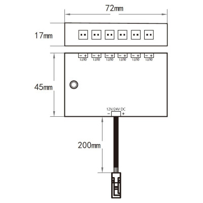 Stmívač KM-W-01, 6A 12V/72W 24V/144W, slouží ke stmívání jednobarevných LED pásů s možností nastavení intenzity světla a spuštění dynamických programů. Ovládání stmívače je manuálně pomocí tlačítek.