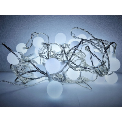 Vánoční řetěz 309-20-LED CW 7M s délkou 7m+1,5m napájecí kabel v barevném provedení zelená, obsahuje 100ks LED v barvě světla studená bílá, určená pro dekorační osvětlení interiérů i exteriérů s krytím IP44 a napájecím napětím 220-2. Řetěz má propojovací konektor který umožňuje spojování více řetězů dohromady.