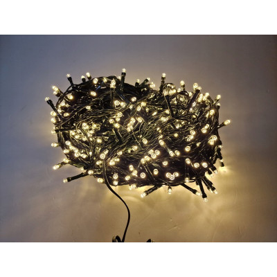 Vánoční řetěz 660-21-LED RC WW 10M s délkou 10m+1,5m napájecí kabel v barevném provedení zelená, obsahuje 200ks LED v barvě světla teplá bílá, určená pro dekorační osvětlení interiérů i exteriérů s krytím IP44, napájecím napětím2 Max. tří řetězů do jednoho celku. Řetěz lze ovládat dálkovým ovladačem, obsahuje také timer pro režim automatického vypnutí a zapnutí.
