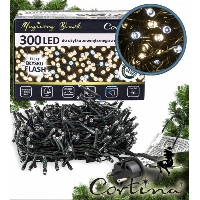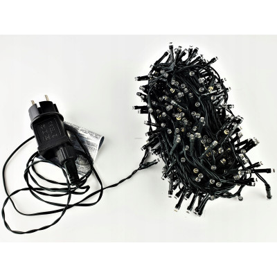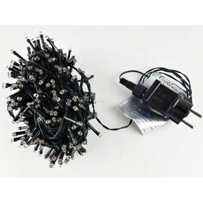 Vánoční řetěz 21-14-LED WW 10m s délkou 10m+1,5m napájecí kabel v barevném provedení černá, obsahuje 200ks LED v barvě světla teplá bílá, určená pro dekorační osvětlení interiérů i exteriérů s krytím IP44 a napájecím napětím 220-2.