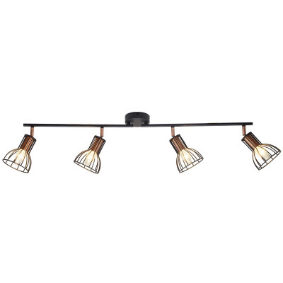 SOFIA je moderní svítilna, čtyřbodová stropní lišta v industriálním (loftovém) stylu, vyrobená z matného černého kovu s měděnými prvky. Doplňující informace: Svítilna se prodává bez světelného zdroje.