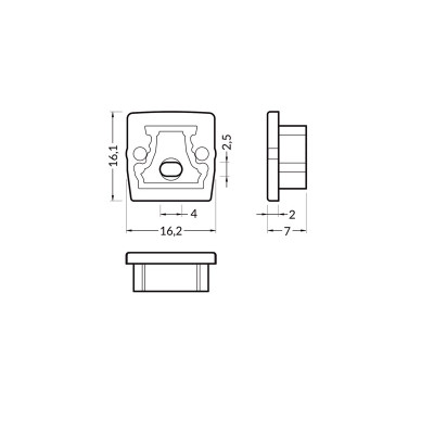 Koncovka s otvorem KM31K-S-O pro zapuštění stříbrná o rozměrech 16,2x16,1x7mm, materiál - ABS.