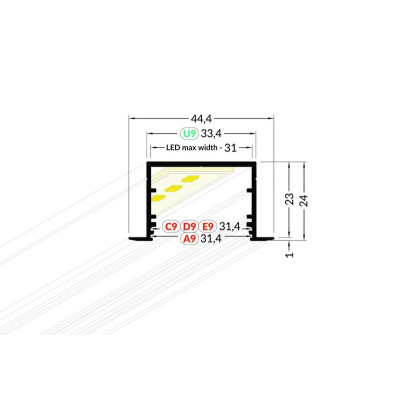 Lišta KM77-C 1M, 40770201, černá hliníková, určená pro zapuštěnou montáž
