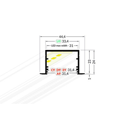 Lišta KM77-C 2M, 40770202, černá hliníková, určená pro zapuštěnou montáž