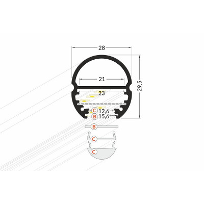 Lišta KM8-S 2M, 40080002, stříbrná hliníková, určená pro osvětlení šatníků