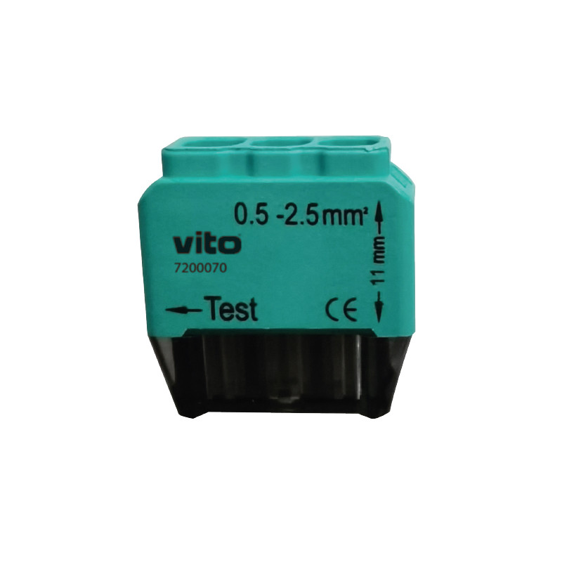 Svorka TB2-24S3G 3x2,5MM2, obj. kód 7200070, která je určena pro spojování vodičů nasunutím.