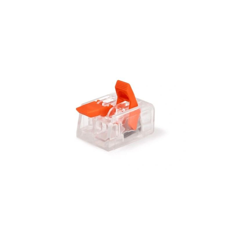 Svorka bezšroubová KM-2D-V-02, Obj. kód 73000060, která je určena pro spojení dvou vodičů nasunutím a zacvaknutím.