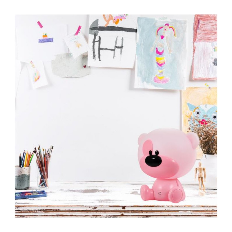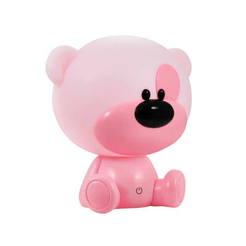 Dětská lampa MACO 312952 RZ SILIKON LED v růžové barvě s výkonem 0,8W, barvou světla teplá bílá 3000K+RGB přepínatelnou dotykem ruky, nabíjecí s napájecím napětím 5V DC, s krytím IP20 vhodná pro osvětlení dětských interiérů.