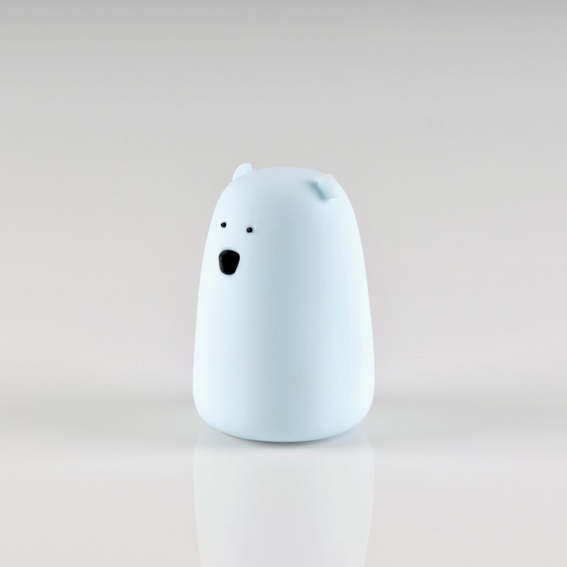 Dětská lampa MACO 312952 BL SILIKON LED v modré barvě o výkonu 0,8W, barvou světla teplá bílá 3000K+RGB přepínatelnou dotykem ruky, nabíjecí s napájecím napětím 5V DC, s krytím IP20 vhodná pro osvětlení dětských interiérů.