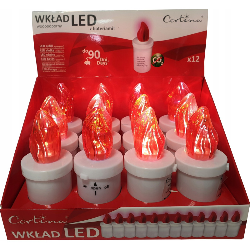 LED vklady 4-15-WLC CV DISPLAY o rozměru D38x107mm v barevném provedení bílá, obsahuje 1ks LED v barvě světla červená, určené do interiérů i exteriérů s krytím IP44. Napájení 2xR6 (AA), baterie jsou součástí balení.