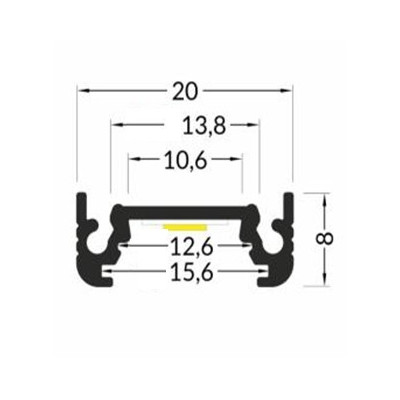 Lišta KM15-C 2M, 40150202, černá hliníková, určená pro zapuštěnou montáž