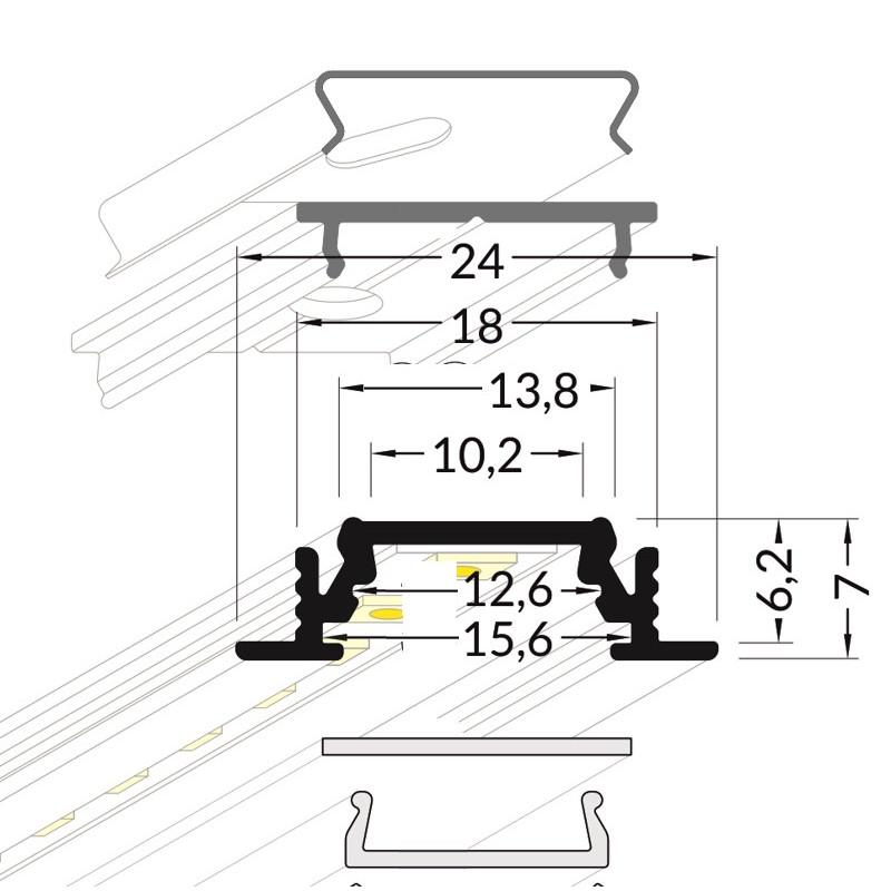 Lišta KM15-C 2M, 40150202, černá hliníková, určená pro zapuštěnou montáž