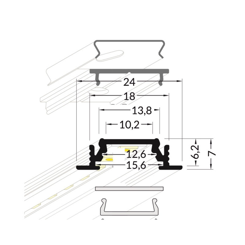 Sada LED KM15-S-TK-6 6000K IP20, s napájecím napětím 12V DC, výkonem 6W/m, barvou světla 6000K studená bílá, svítivostí 660lm/m, krytím IP20, vyráběna na míru na základě požadavků zákazníka.