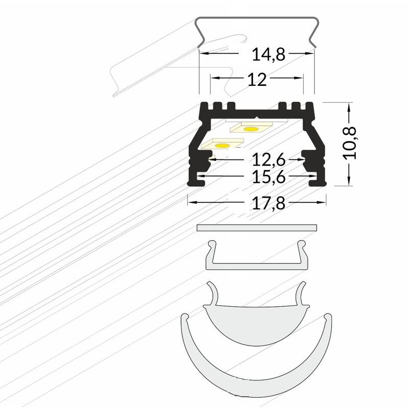 Lišta KM17-B 2M, 40170102, bílá hliníková, určená pro povrchovou montáž