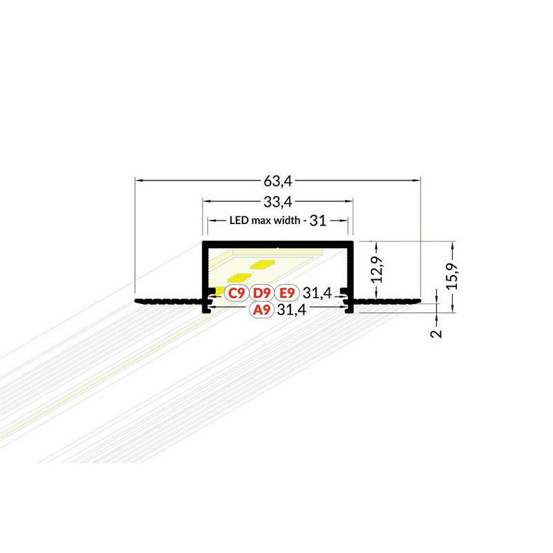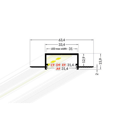 Lišta KM74-B 2M, 40740102, bílá hliníková, určená pro zapuštěnou montáž