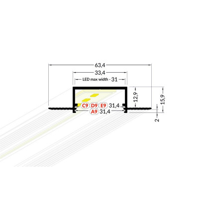 Lišta KM74-S 2M, 40740002, stříbrná hliníková, určená pro zapuštěnou montáž