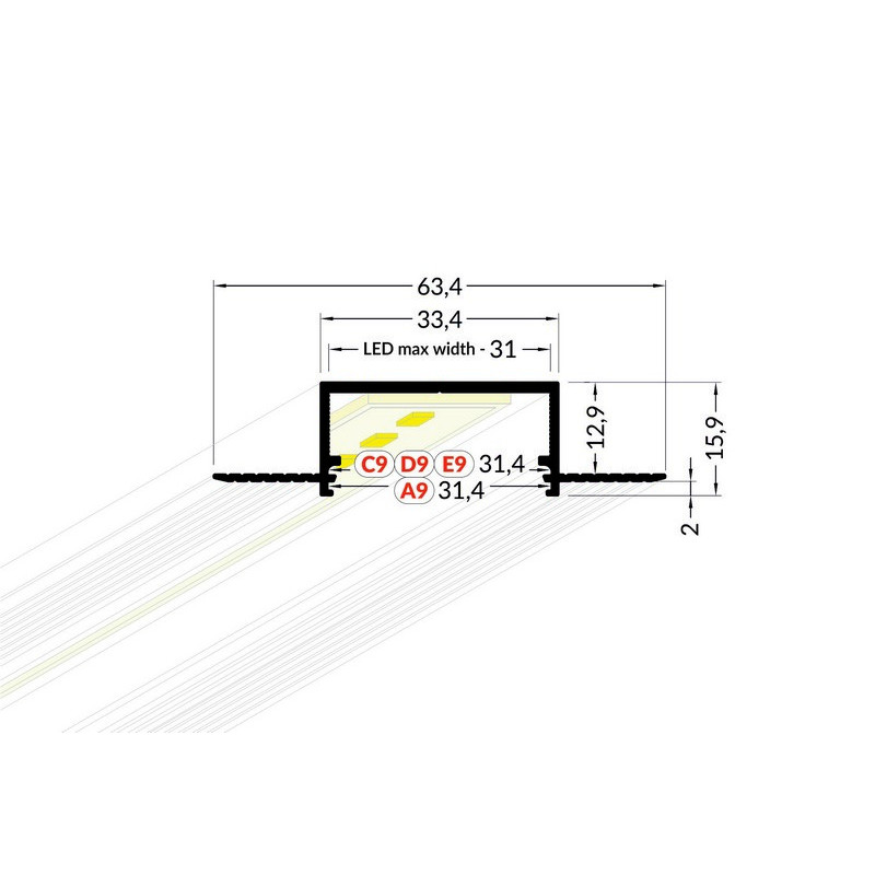 Lišta KM74-B 2M, 40740102, bílá hliníková, určená pro zapuštěnou montáž