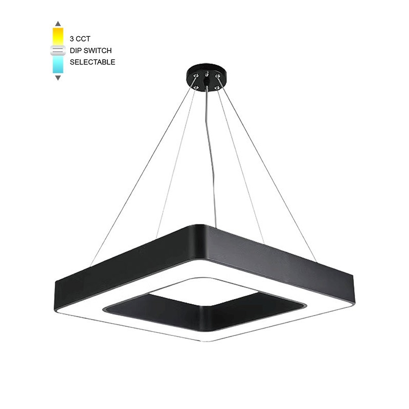 Svítilna FINESSE F-45 50x50 LED 45W CCT-DIP BLC v barevném provedení černá s nastavitelnou barvou světla, určené pro osvětlení interiérů. Pomocí přepínače DIP můžete nastavit barvu světla na tři hodnoty 3000K/4000K/6000K - teplá/neutrana/studená.