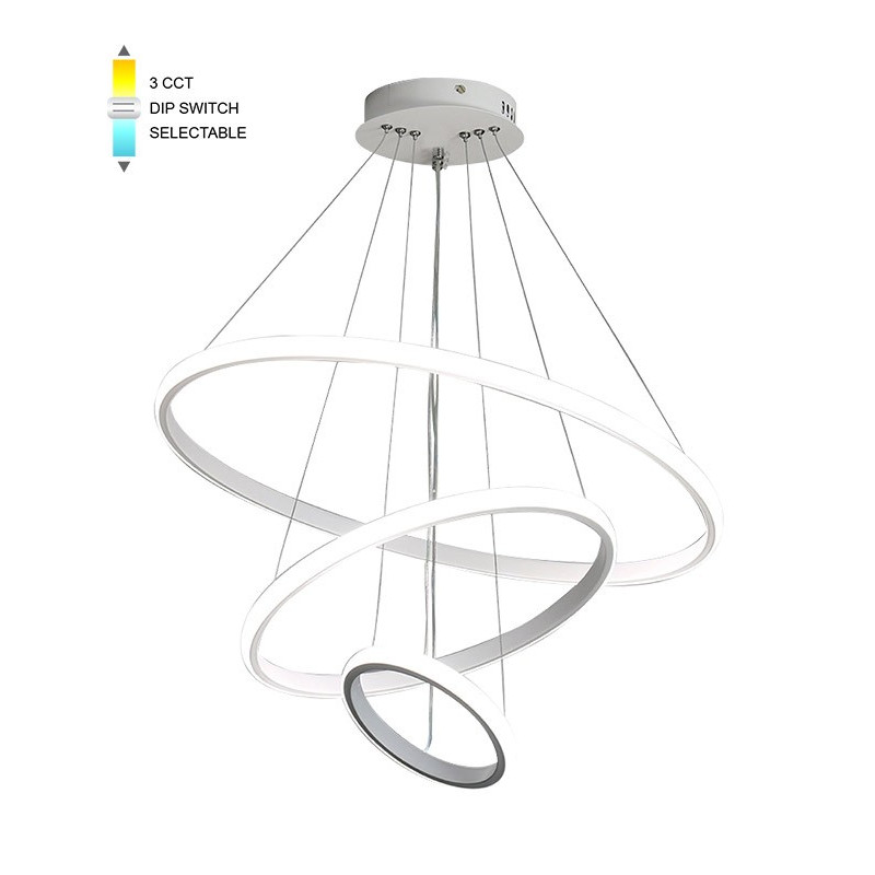 Svítilna TRIO-1 D20+40+60 LED 56W CCT-DIP WHT v barevném provedení bílá s nastavitelnou barvou světla, určené pro osvětlení interiérů. Pomocí přepínače DIP můžete nastavit barvu světla na tři hodnoty 3000K/4000K/6000K - teplá/neutrana/studená.