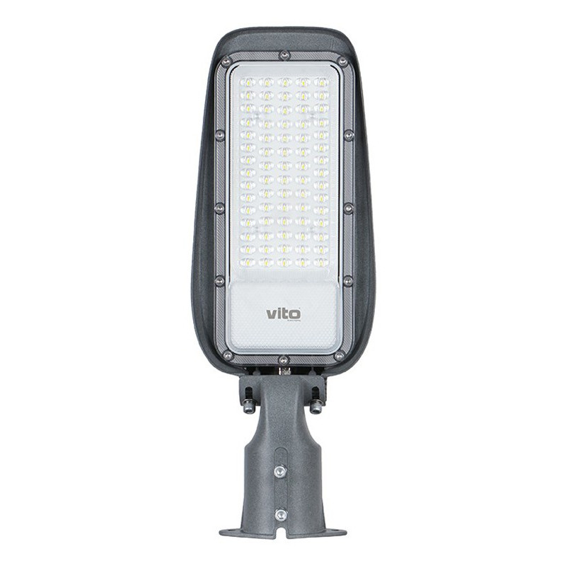 Svítidlo veřejného osvětlení TIGER se zabudovaným LED zdrojem o výkonu 50W s barvou světla 4000K - neutrální bílá, svítivostí 6000lm, krytím IP65. Montáž na výložník D60mm. Svítilna má nastavitelný kloub se kterým lze doladit úhel instalace.