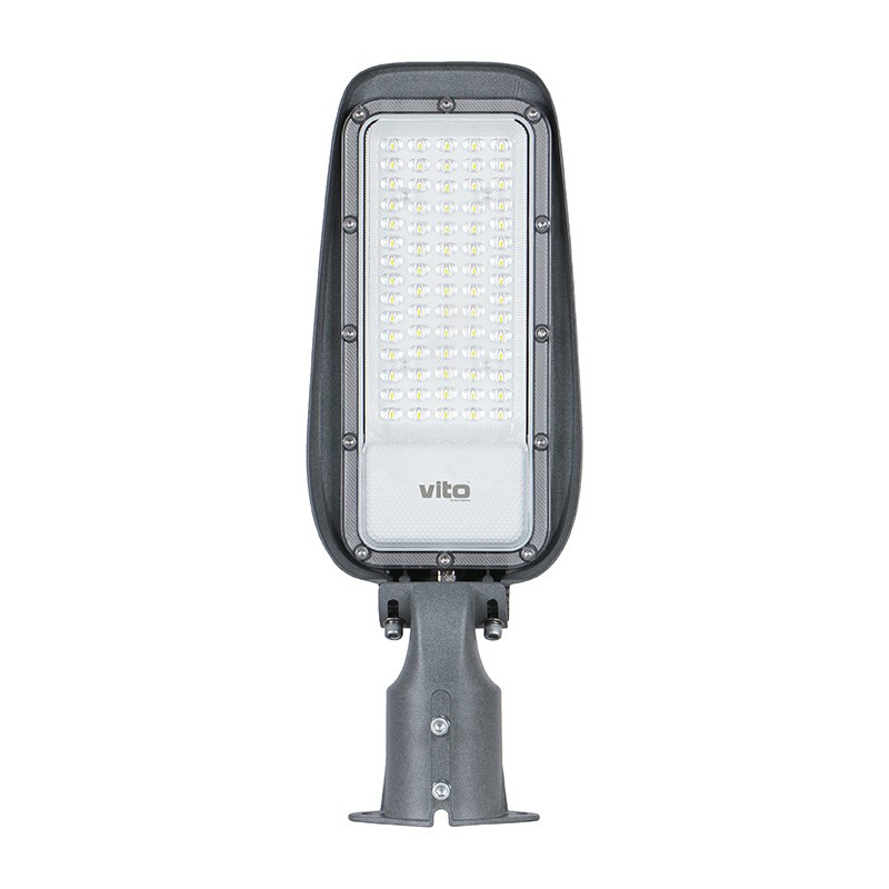 Svítilna veřejného osvětlení TIGER se zabudovaným LED zdrojem o výkonu 50W s barvou světla 4000K - neutrální bílá, svítivostí 6000lm, krytím IP65. Montáž na výložník D60mm. Svítilna má nastavitelný kloub se kterým lze doladit úhel instalace.