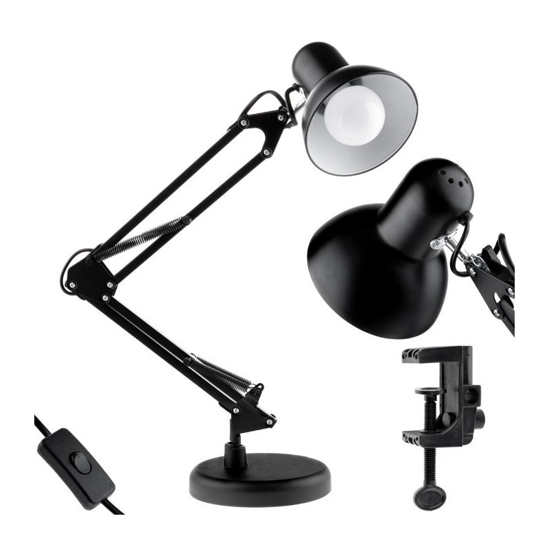 Stoliková lampa na psací stůl TOBI E27 černá + stolní držák