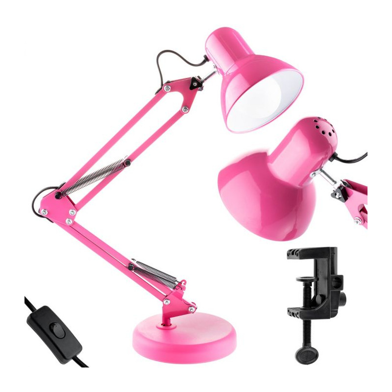 Stoliková lampa na psací stůl TOBI E27 růžová + stolní držák
