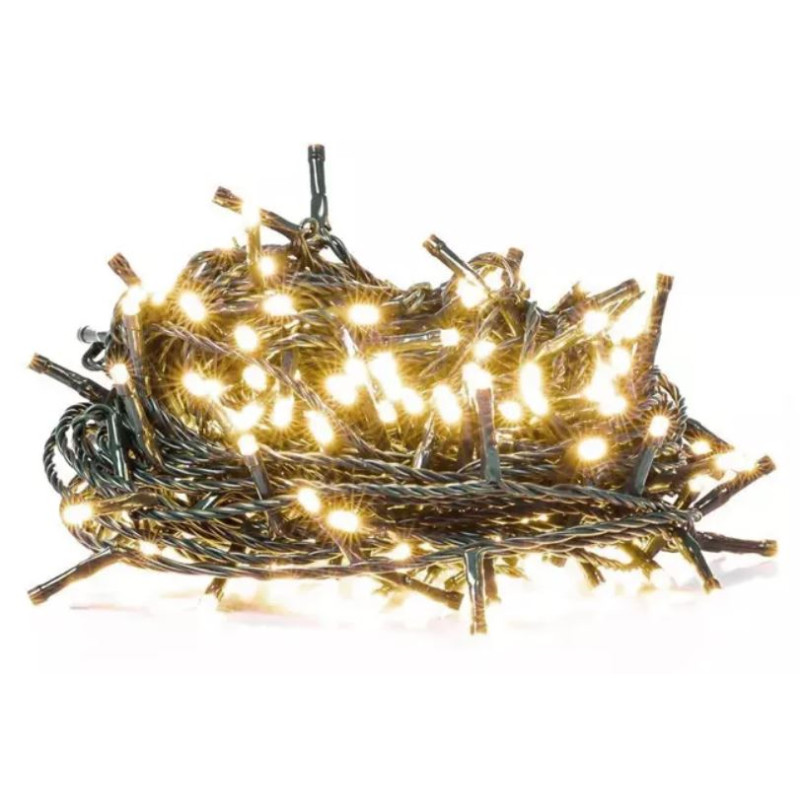 Vianočná reťaz 11-15-LED WW 20m s dĺžkou 20m+1,5m napájací kábel vo farebnom prevedení zelená, obsahuje 400ks LED vo farbe svetla teplá biela, určená pre dekoračné osvetlenie interiérov aj exteriérov s krytím IP44 a napájacím napätím 220-240V.