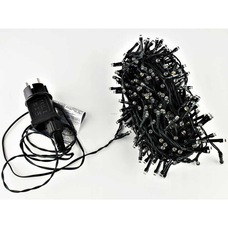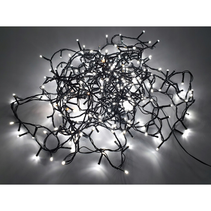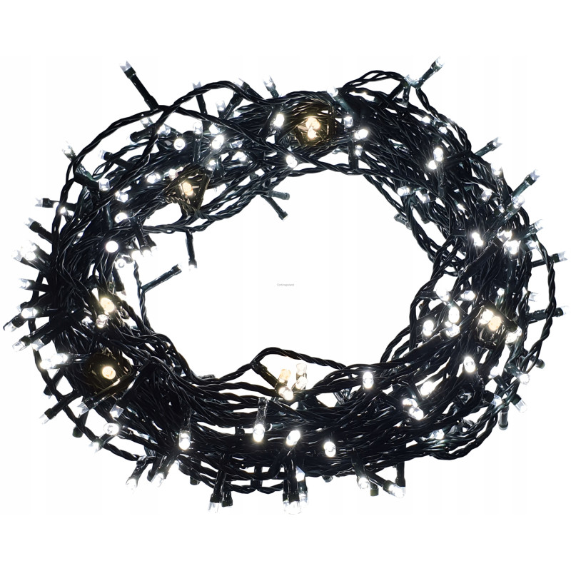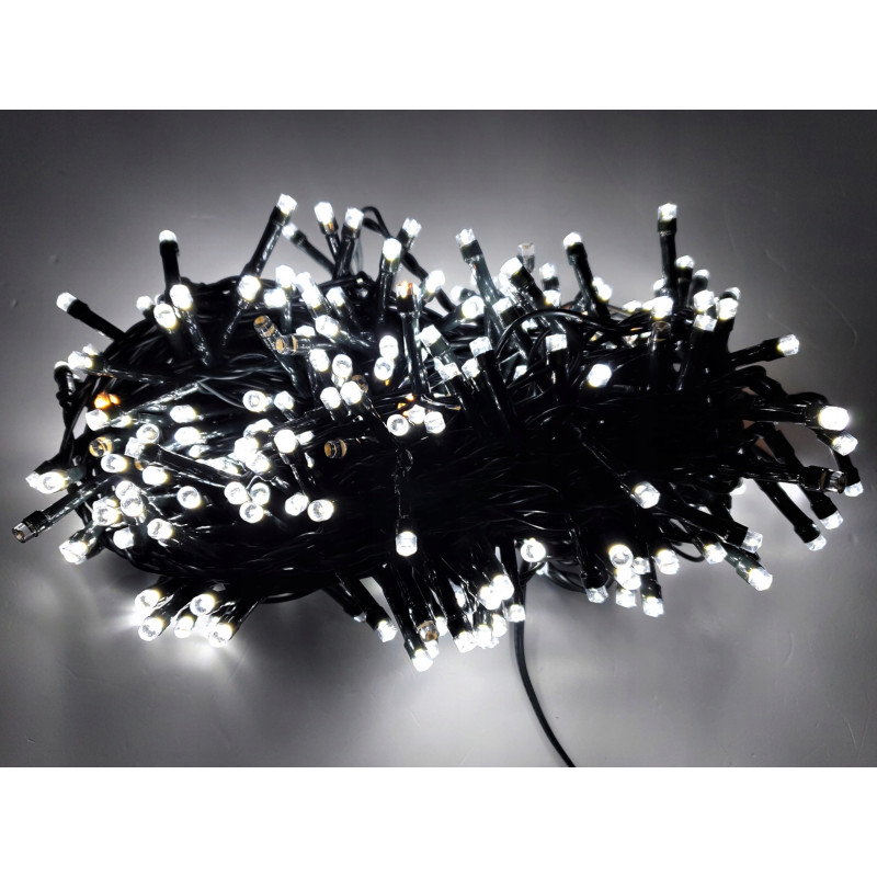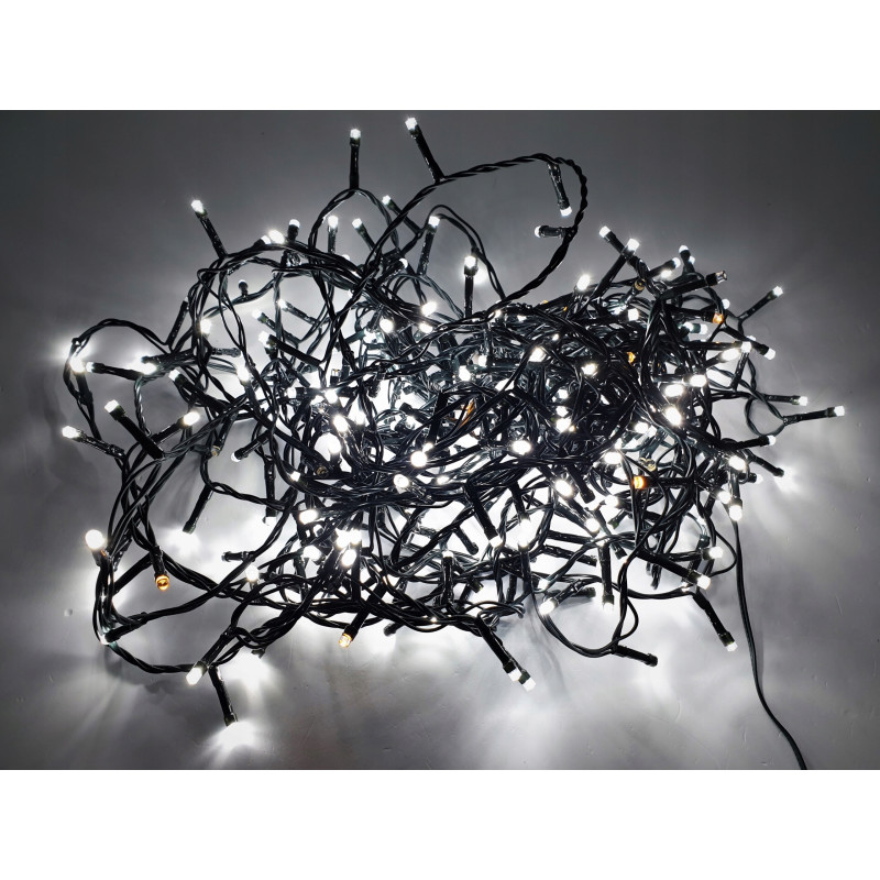 Vánoční řetěz 2-20-FLE CW+WW 20M s délkou 20m+1,5m napájecí kabel v barevném provedení zelená, obsahuje 400ks LED v barvě světla studená bílá s efektem FLASH problikování studené bílé, určená pro dekorační osvětlení interiérů i exteriérů 220-240V.