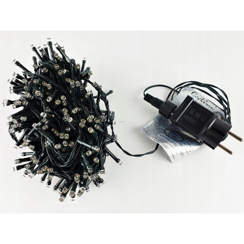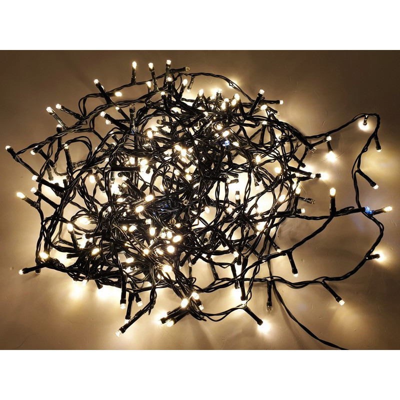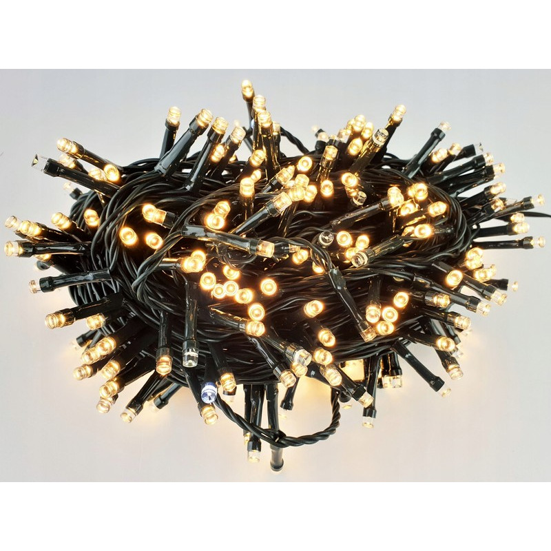 Vánoční řetěz 3-20-FLE WW+CW 25M s délkou 25m+1,5m napájecí kabel v barevném provedení zelená, obsahuje 500ks LED v barvě světla teplá bílá s efektem FLASH problikávání studené bílé, určená pro dekorační osvětlení interiérů i exterié 220-240V.