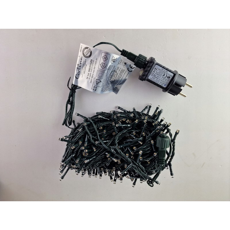 Vánoční řetěz 642-21-LED T WW 20M s délkou 20m+1,5m napájecí kabel v barevném provedení zelená, obsahuje 400ks LED v barvě světla teplá bílá, určená pro dekorační osvětlení interiérů i exteriérů s krytím IP44 a napájecím napětím22. Obsahuje timer pro režim automatického zapnutí/vypnutí a propojovací konektor - možnost spojit Max. tři řetězy.