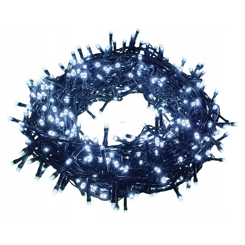 Vánoční řetěz 644-21-LED RC CW 10M s délkou 20m+1,5m napájecí kabel v barevném provedení zelená, obsahuje 400ks LED v barvě světla studená bílá, určená pro dekorační osvětlení interiérů i exteriérů s krytím IP44, napájecím napětím2 Max. tří řetězů do jednoho celku. Řetěz lze ovládat dálkovým ovladačem, obsahuje také timer pro režim automatického vypnutí a zapnutí.