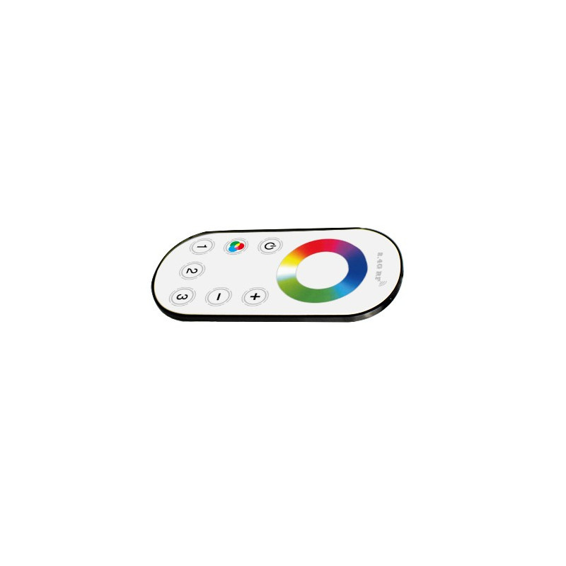 RGB 4zónový ovladač KM-RGB-4Z-01, s RF přenosem, slouží k ovládání RGB pásů s možností nastavení různých statických barev světla, nebo spuštění více dynamických programů. Při nastavení statické barvy lze zvýšit/snížit intenzitu osvětlení, při spuštěném programu lze zvýšit/snížit rychlost programu. Používá se v kombinaci se 4zónovým RGB přijímačem, kde na jeden ovladač lze napárovat až 40ks přijímačů. Umožňuje ovládat čtyři skupiny přijímačů nezávisle na sobě.