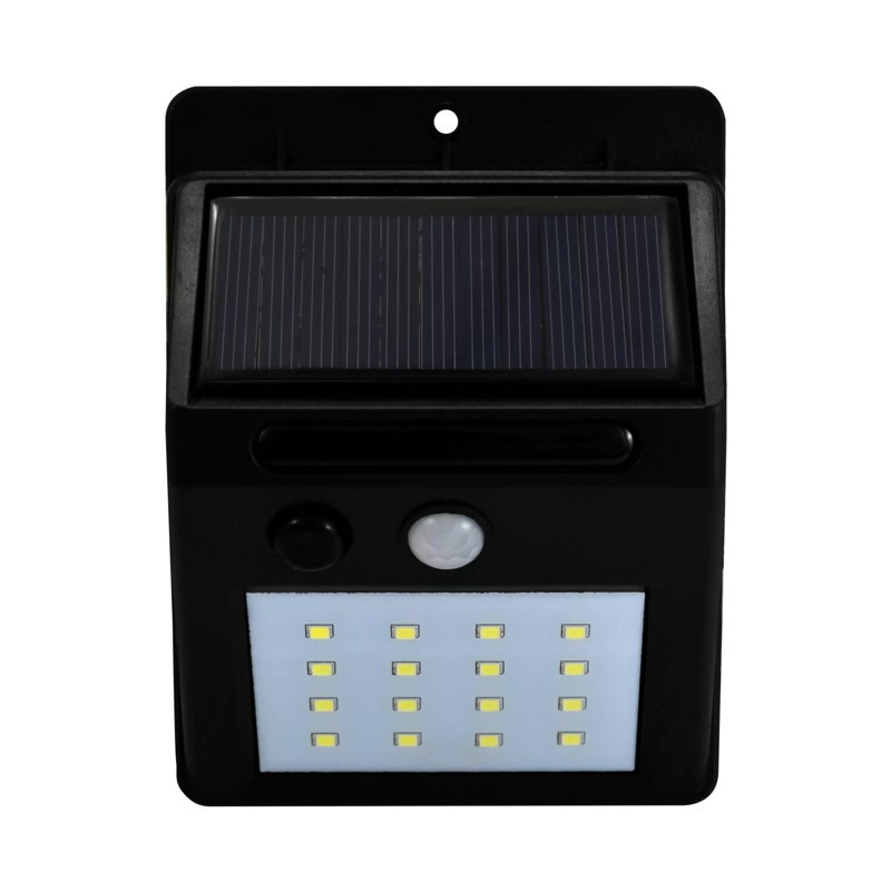 SOLUX-W je solární vodotěsný reflektor IP44 vybaven LED diodami SMD, PIR a fotosenzorem. Transparentní polykarbonátový difuzor o tloušťce 4 mm. Polykrystalický polykarbonátový panel 5,5V - 1,65W. Baterie: 18650 3,7V 1850mAh. Doba nabíjení: 8-10h Doba svícení: 8-12h Funkce: fotosenzor + PIR senzor. Režim senzoru 1: Ve tmě bude světlo svítit nepřetržitě. Režim senzoru 2: Ve tmě bude slabé světlo a automaticky se zapne silné světlo na 15 sekund, když se zaznamená pohyb lidí a poté se vrátí zpět na slabé světlo. Režim světelného senzoru 3: Ve tmě se světlo automaticky zapne na 15 sekund, když zaznamená pohyb lidí, a poté se vypne. - Detekční vzdálenost PIR senzoru: 3-5m.