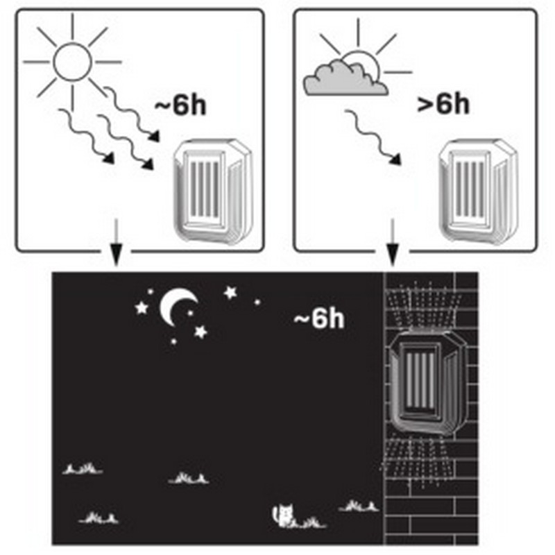 Moderní solární fasáda vyrobená z plastu v černé barvě. Svítilna LED se nabíjí pomocí solárního panelu. Ideální pro osvětlovací místa, kde není přístup k napájení. LUCE je orientační svítidlo určené k montáži na zeď. Ideální pro fasády podél domu, garáže nebo schodů. Lampa je vybavena vestavěnými solárními panely. Svítilna se spustí automaticky po setmění. Doplňující informace: Vestavěný snímač soumraku – automaticky zapne lampu po soumraku Čas osvětlení po úplném nabití baterie: maximálně 6 hodin (měřeno v létě, baterie nabitá za slunečného počasí během dne)