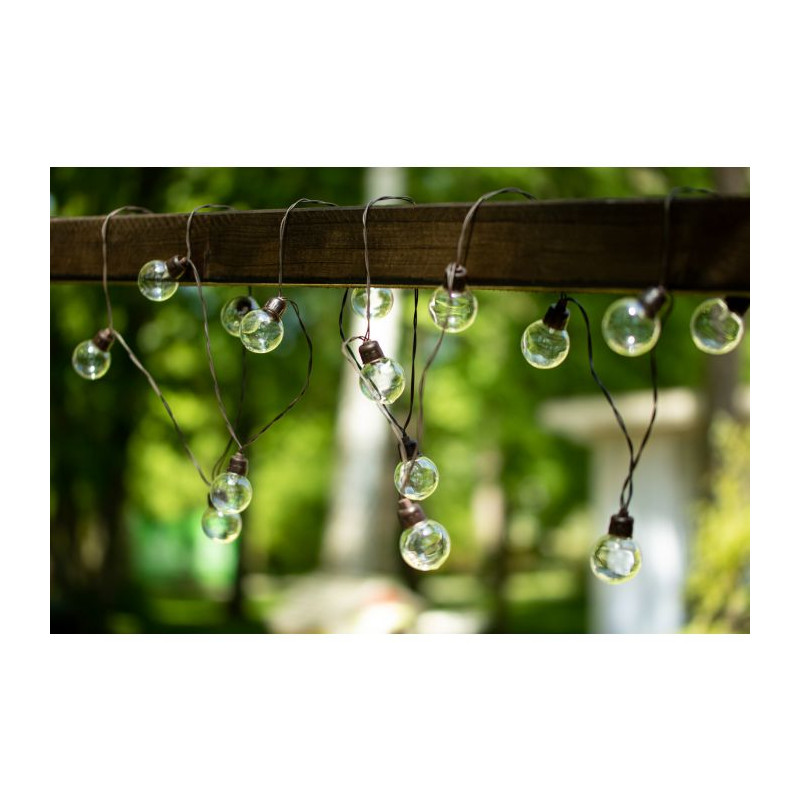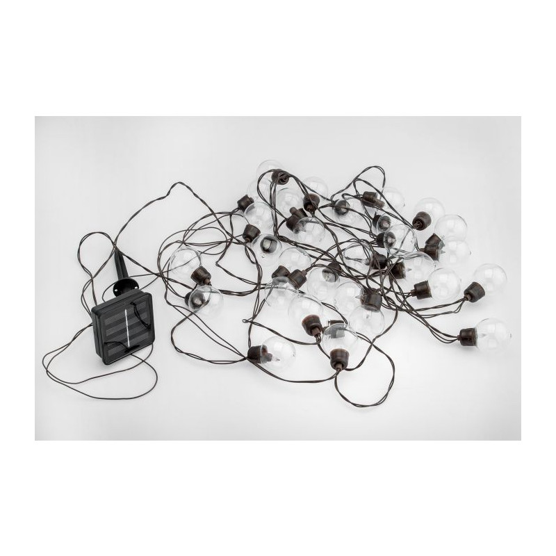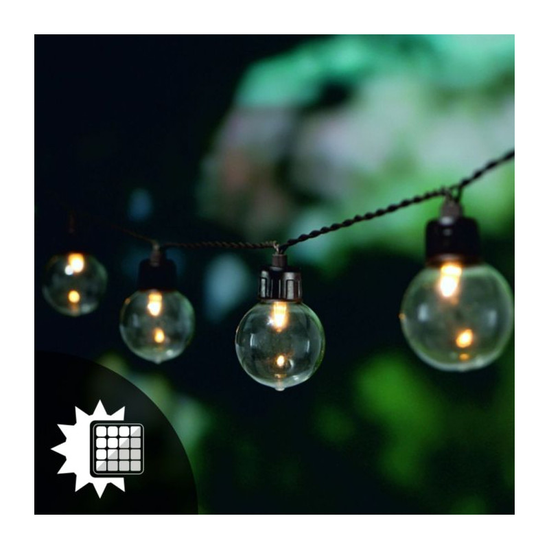 Solární svítidlo GIRLANDA GLADI 20LED s celkovou délkou 7,5m, s krytím IP44 vhodné do exteriérů, barva světla teplá bílá, doba svícení při plném nabití 8h.