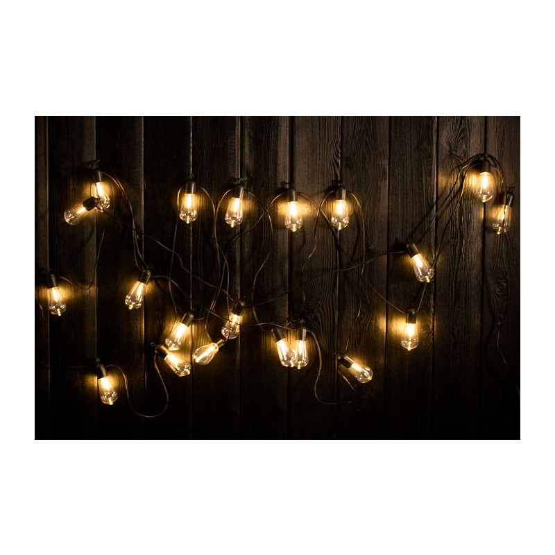 Solární svítidlo GIRLANDA GLADI 20LED s celkovou délkou 7,5m, s krytím IP44 vhodné do exteriérů, barva světla teplá bílá, doba svícení při plném nabití 8h.