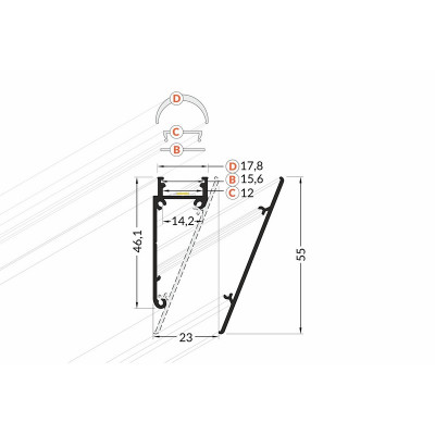 Lišta KM7-S 2M, 40070002, stříbrná hliníková, určená pro osvětlení stěn