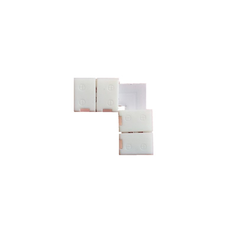 Spojka rohová KM-10A-2PL, obj. kód 20000217, která je určena pro rohové spojení 2pin LED pásů šířky 8-10mm nasunutím a šroubováním.