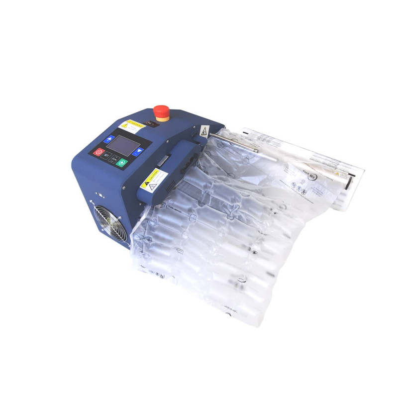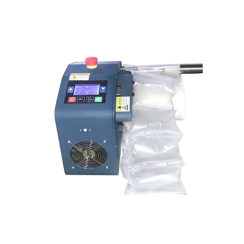 Stroj na výrobu vzduchových polštářů a výplní KM-4501, s výkonem 450W a maximální rychlostí výroby 28m/min.