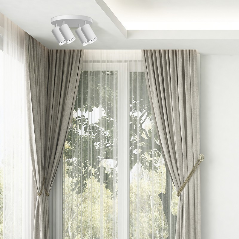 TURYN je čtyřbodové, moderní stropní svítidlo s nastavitelným, vyměnitelným zdrojem světla, vyrobeno z bílého hliníku, ukončeno průhlednými kroužky. Díky zvýšenému krytí IP44 lze stropní svítidlo použít v místnostech se zvýšenou vlhkostí. Přiložené hmoždinky a šrouby pro montáž svítidla jsou určeny pro pevné povrchy (beton, plná cihla). K připevnění svítidla vždy používejte upevňovací prvky, které jsou vhodné pro stěny ve vaší domácnosti. Další informace: Svítilna se prodává bez světelného zdroje., Možnost použití dvoupólového vypínače