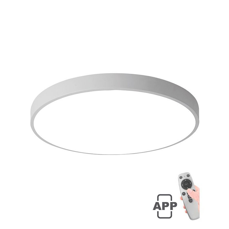 Svítilna FINESSE R1-60 D60 LED 60W DIM+MOB WHT v bílém barevném provedení s nastavitelnou barvou světla a svítivostí, určené pro osvětlení interiérů. Pomocí dálkového ovladače nebo mobilní aplikace si můžete nastavit barvu světla a svítivost svítidla.