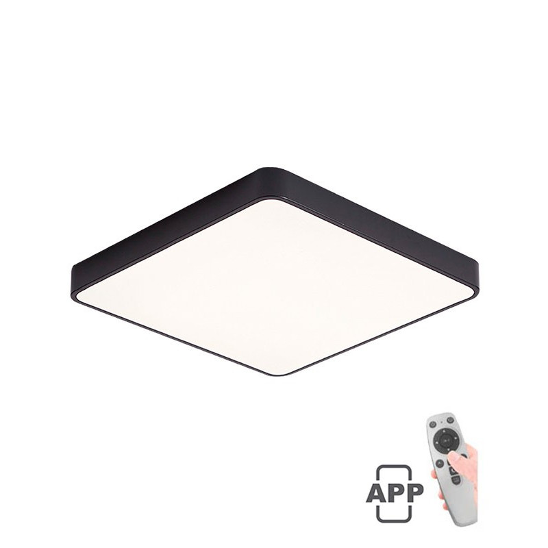 Svítilna FINESSE S1-60 60x60 LED 60W DIM+MOB BLC v černém barevném provedení s nastavitelnou barvou světla a svítivostí, určené pro osvětlení interiérů. Pomocí dálkového ovladače nebo mobilní aplikace si můžete nastavit barvu světla a svítivost svítidla.