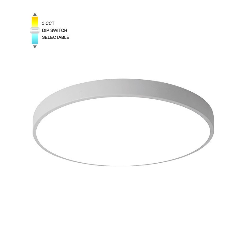Svítidlo RING 38 D46 LED 38W CCT-DIP WHT v barevném provedení bílá s nastavitelnou barvou světla, určené pro osvětlení interiérů. Pomocí přepínače DIP můžete nastavit barvu světla na tři hodnoty 3000K/4000K/6000K - teplá/neutrana/studená.