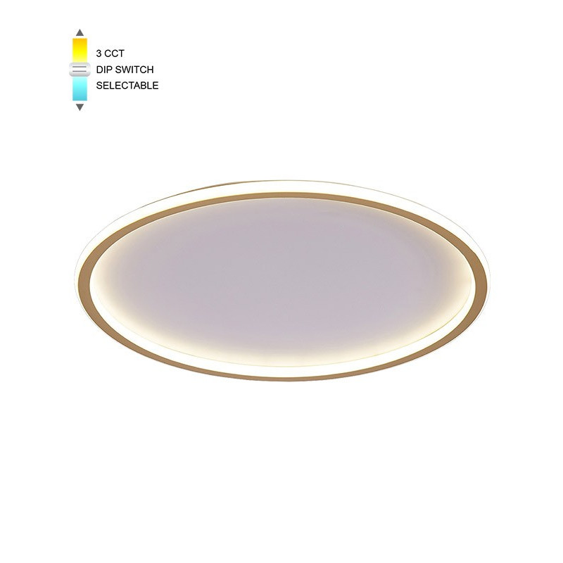 Svítilna DISC D50 LED 46W CCT-DIP WHT+GLD v barevném provedení bílá + zlatá s nastavitelnou barvou světla, určené pro osvětlení interiérů. Pomocí přepínače DIP můžete nastavit barvu světla na tři hodnoty 3000K/4000K/6000K - teplá/neutrana/studená.