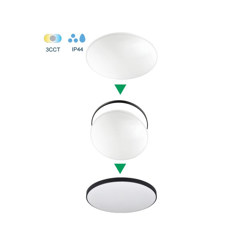 Svítidlo SATURN-32W D38 CCT o průměru 38cm, v barevném provedení bílá/černá - vyměnitelný rám, s nastavitelnou barvou světla 3000K-4000K-6500K, určené pro osvětlení interiérů.