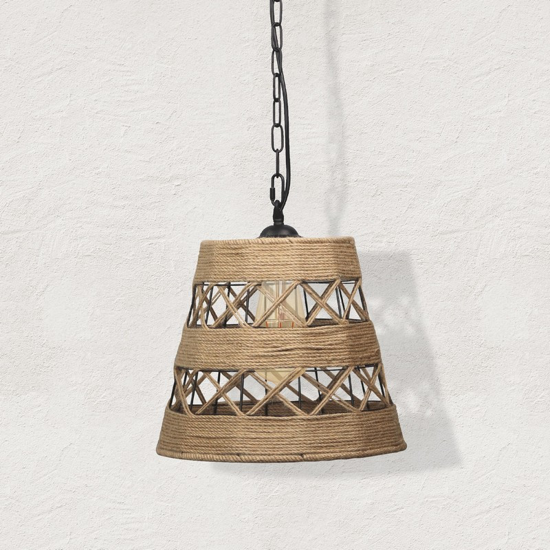 Svítidlo ALMA ROPE je univerzální závěsné svítidlo. Stínítko vyrobené z propojených černých drátů a propletené béžovou šňůrkou se perfektně hodí do boho, rustikálních a vintage interiérů. Svítilna se bude skvěle vyjímat v obýváku, kuchyni i ložnici. Ke svítidlu doporučujeme dekorativní žárovky ze série FILAMENT pro nádherné provedení a dekorativní charakter a LED svítidla tradičního tvaru pro získání maximálního množství světla.